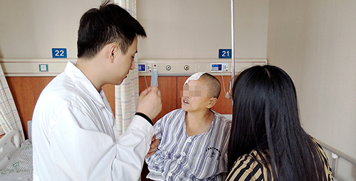 ▲管床醫(yī)師向患者和家屬講解術(shù)后恢復注意事項