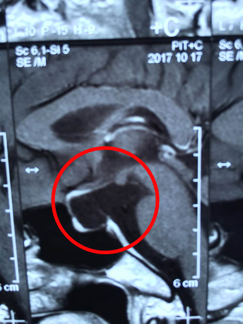 清晰影像之下 “元兇”無可遁形(紅圈內(nèi)即為垂體柄囊腫)