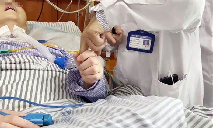 ▲ 患者蘇醒后能握住潘主任的手指