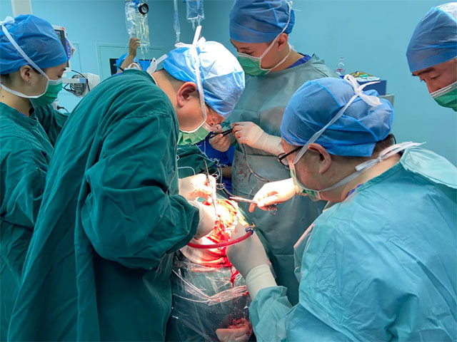 ▲ 李士其教授(右二)正聚精會神為患者手術(shù)