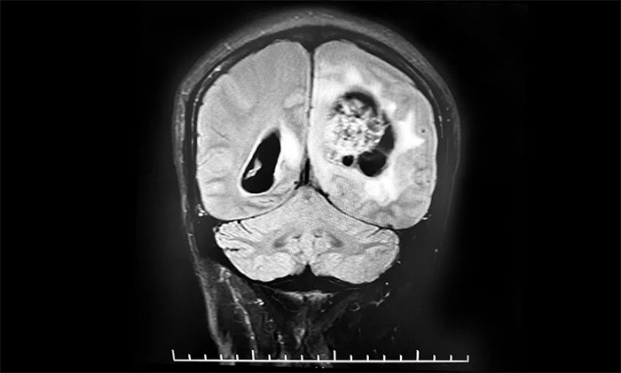 ▲ 左側(cè)頂枕葉巨大腫瘤伴局部瘤卒中