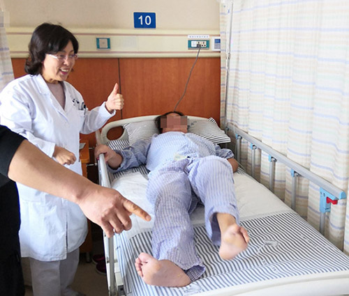 ▲經(jīng)過(guò)半個(gè)月治療,趙秋華左腿按照醫(yī)生的指示可以活動(dòng)自如