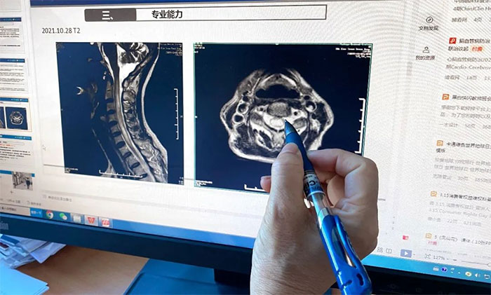 2021年7月份,張阿姨在休息時出現(xiàn)左上肢麻木伴刺痛感,進(jìn)行性加重,當(dāng)時無肢體活動障礙,到當(dāng)?shù)蒯t(yī)院就診考慮皰疹病毒感染,給予對癥治療后好轉(zhuǎn)。但是,到9月份張阿姨右上肢出現(xiàn)麻木刺痛,并且左上肢麻木也較之前加重,給予藥物治療后無果,麻木感無好轉(zhuǎn)且向下擴(kuò)散至全身,右側(cè)麻木重于左側(cè),到2021年10月底病情進(jìn)一步加重,出現(xiàn)四肢無力,癱瘓臥床。為尋求進(jìn)一步治療,張阿姨慕名找到上海藍(lán)十字腦科醫(yī)院神經(jīng)內(nèi)科張靜波主任。