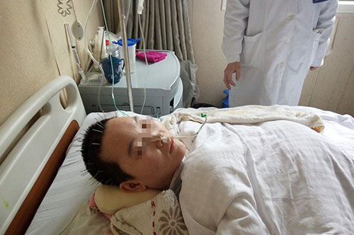 “徐燕當時情況十分糟糕,大腦大部分組織壞死,大概有60-70%,氣管切開,呼吸不好,肺部感染,昏迷程度深,肢體僵直,顱壓高,嘔吐不止......腦損傷后腦子大部分出血、軟化、水腫,如果大腦有100個腦細胞的話,那么這位患者可能70個腦細胞已經(jīng)沒有了,維持生命有問題,康復有問題......”據(jù)我院神經(jīng)外科主任侯增欣介紹。