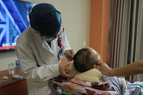 病情逐漸好轉,李魯萍主任在病房為徐燕進行針灸治療