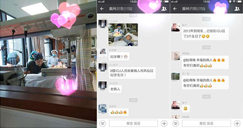三年前,阿婆過89歲大壽的時(shí)候,也是院里一些醫(yī)護(hù)人員陪伴她一起過的,當(dāng)時(shí)院里買了蛋糕和禮物,至今護(hù)士長(zhǎng)趙德梅依然記得那個(gè)時(shí)候。她說每位患者只要在醫(yī)院一天,ICU團(tuán)隊(duì)醫(yī)護(hù)人員就會(huì)好好照顧陪伴、照料他們。