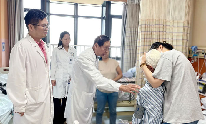七旬的王大爺(化名)16年前不幸罹患巨大膠質(zhì)瘤,最終由周范民教授主刀順利進(jìn)行了手術(shù),顯微鏡下精準(zhǔn)地完成了腫瘤切除手術(shù),并保留了患者腦功能區(qū)在解剖上和功能上的完整性。術(shù)后病理確診膠質(zhì)瘤3級。手術(shù)很成功,16年來,王大爺可以正常生活,基本與常人無異。直到去年七月份,王大爺膠質(zhì)瘤“復(fù)發(fā)”。由于腫瘤巨大,病情棘手,當(dāng)?shù)蒯t(yī)院表示無法救治,希望渺茫。遂再次赴滬求醫(yī)于周范民教授,最終順利手術(shù)切除兩個(gè)病灶,并排除膠質(zhì)瘤,讓患者轉(zhuǎn)危為安。“感謝你們給了我第三次生命!”患者十分感激。